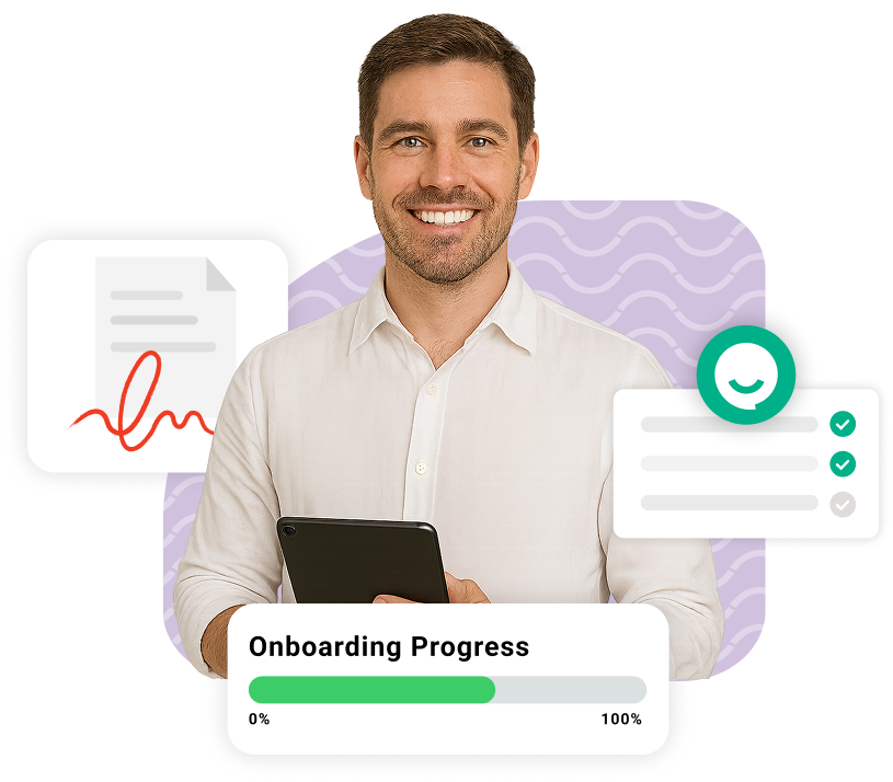 Access mobile-first onboarding with automated document collection, e-signatures, onboarding alerts, and compliance checks.