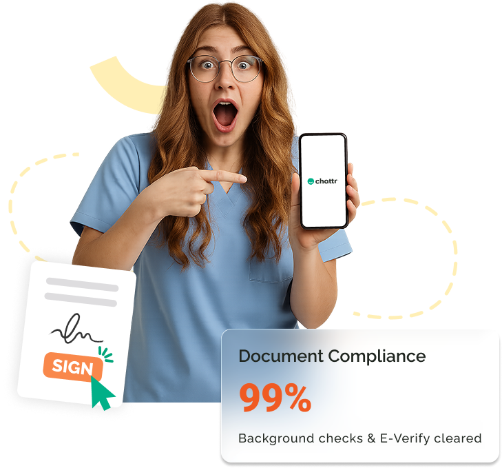 Chattr streamlines sourcing, credential checks, interviews, and forms so managers spend time on care, not admin.